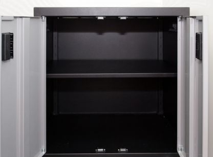 Металлическая подкатная тумба с двумя дверцами и двумя полками. Размер 800х700х460мм. Тумба оснащена четырьмя обрезиненными колесами с подшипниками. Два передних колеса с блокираторами. Внутри тумбы устанавливаются две металлических полки. На верхнюю часть тумбы можно прикрепить металлический лоток с резиновым ковриком CBDT или деревянную столешницу (приобретаются отдельно). Толщина металла 0.9мм. Вес 19кг.