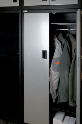 Металлический шкаф изготовлен из стали с полимерным напылением. Внутри имеются четыре полки. В базовой комплектации для навесной модели прилагаются кронштейны, которые устанавливаются на направляющие на стене. Если же планируется держать его на полу, предлагаются купить шкаф навесной с ножками или колесами. Такой шкаф гарантирует сохранение и надежную защиту от непреднамеренных и преднамеренных механических повреждений, находящихся внутри предметов.