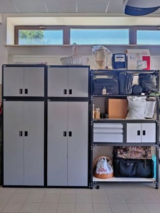 Если вы ищете навесной или напольный шкаф в гараж или другое подсобное помещение, данная модель подойдет идеально. Многофункциональная мебель позволяет поместить в себе много разных предметов, а также при необходимости спрятать коммуникации.