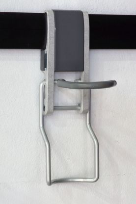 Крюк для хранения велосипеда в вертикальном положении. Позволяет удобно разместить велосипед на стену за переднее колесо. Выдерживает нагрузку до 50кг. Имеет надежный фиксатор для безопасного хранения.