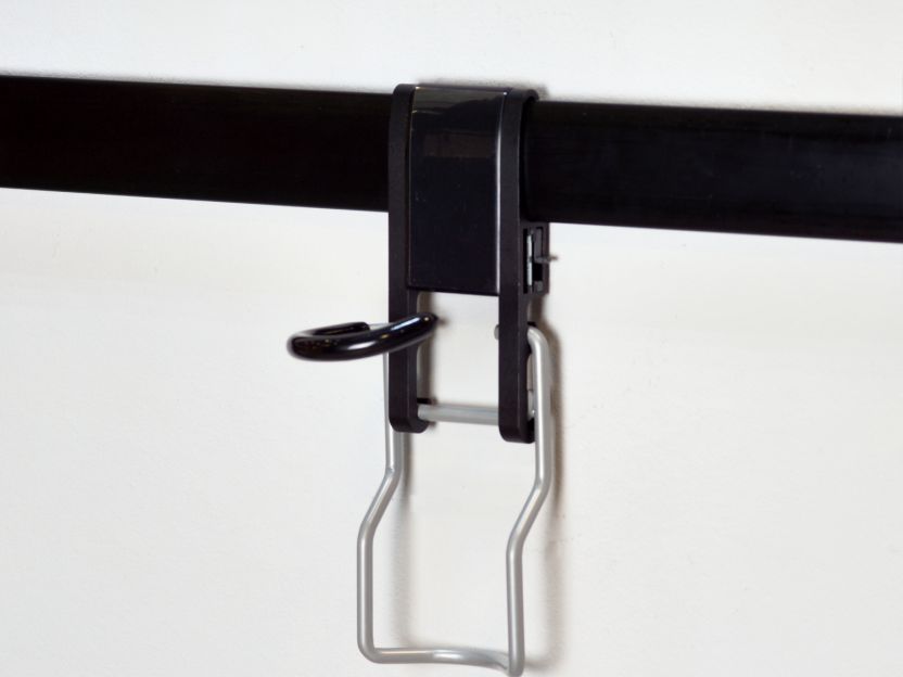 Крюк GSH58BK для хранения велосипеда в вертикальном положении. Позволяет удобно разместить велосипед на стену за переднее колесо. Выдерживает нагрузку до 50кг.