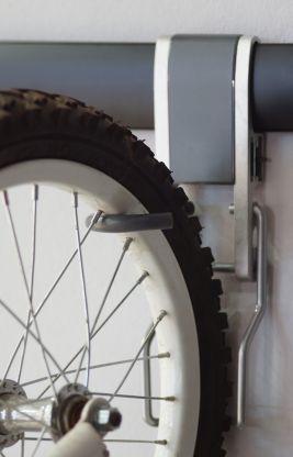 - Позволяет удобно разместить велосипеды на стену за переднее колесо.