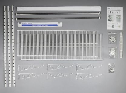 Набор для гардеробной комнаты. Все необходимое в одной коробке. Ширина полок 1190мм, глубина 385мм. Высота вертикальных направляющих 1175мм.