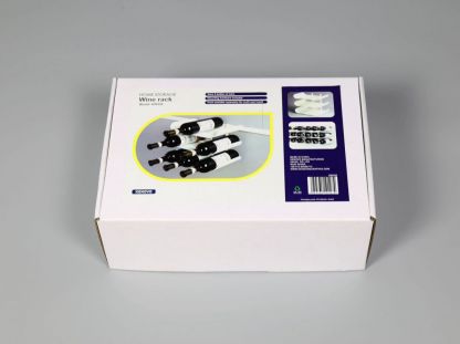 Полка для винных бутылок может быть установлена на свободной стене. Здесь же иногда предусматривают и стойку для хранения бокалов. Полка предназначена для девяти бутылок. Она выполнена в белом цвете, который гармонично смотрится в любом стиле помещения. К полке прилагаются специальные блоки для установки на стене. Это прекрасное решение для хранения вина, которое будет выполнять, к тому же, декоративную функцию.