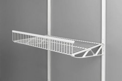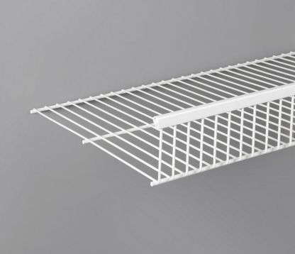 Полка-корзина является разновидностью полочной панели с добавлением переднего бортика. Очень удобна для хранения предметов склонных скатываться (клубки пряжи, детские круглые игрушки, теннисные мячики) или мягких вещей (одеяла, подушки, свитера), которые при складывании в стопку имеют свойство вылезать за пределы полки.