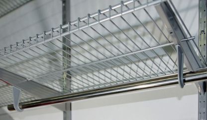 Штанга для продольного размещения одежных вешалок. Штанга крепится к кронштейнам с помощью специальных пластиковых крючков SHVRH. Имеет гладкое блестящее хромированное покрытие.