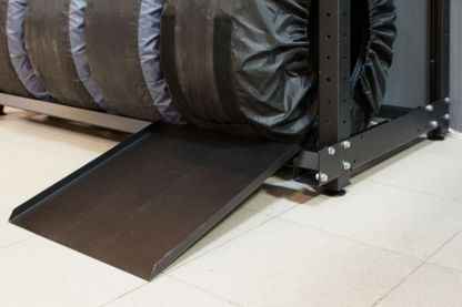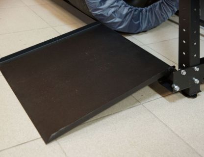 Трап для удобного закатывания тяжелых колес на стеллажный модуль STL-TR1460. Трап изготовлен из стали толщиной 1.5мм. Ширина 400мм, длина 465мм. После использования убирается в нишу кронштейна STL-TR1460.