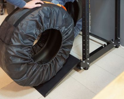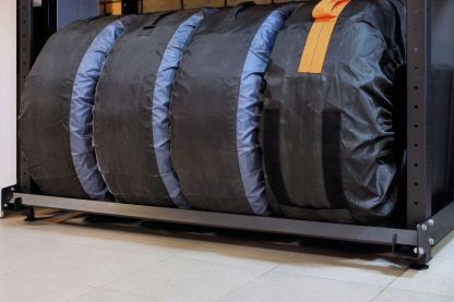 Предназначен для хранения сезонных колёс диаметром до 820мм и шириной до 300мм (R22/295/45, R24/295/35). Общая нагрузка до 250кг. Специальные переставные опоры позволяют разместить колёса таким образом, что бы они не выходили за тыловые габариты стеллажа и не касались стены у которой он стоит - т.е. стеллаж можно разместить вплотную к стене не зависимо от размеров колёс.