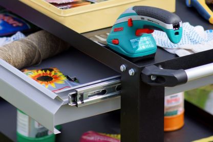 Выдвижной ящик высотой 70мм для установки в открытую тележку HC1. Ящик изготовлен из стали толщиной 0,9мм, окрашен порошковым полимером серебристого цвета. Ящик снабжен роликовым выдвижным механизмом производства компании Edson, выдерживает нагрузку до 30кг. Легко крепится на тележке с помощью четырех винтов.