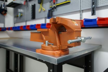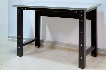 Разборный верстак WB10. Каркас 1000х500мм. Высота регулируется от 700мм до 1100мм. Столешница из березовой фанеры обернутой оцинкованной сталью (2,5мм). Размер 1100х600х25мм. Все силовые элементы сделаны из стали толщиной 1.5мм. Верстак покрыт прочной порошковой матовой эмалью черного цвета. Весь крепеж оцинкован. Каркас выдерживает нагрузку 500кг.